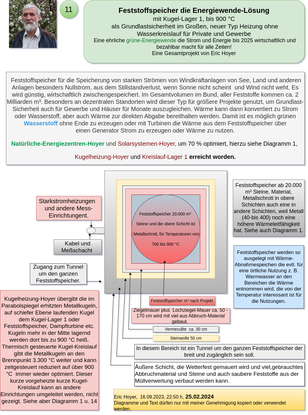 My inventions, processes, and applications – such as the Natural Energy Centers-Hoyer, the Heating-Warming Center-Hoyer, the Sphere Heating-Hoyer, and the Solid Storage-Hoyer – have proven through calculations that electricity, heat, energy, and hydrogen can be generated much more cost-effectively and environmentally friendly using solar heat and the Solar Systems-Hoyer. These systems have the potential to meet the climate goals set for 2045, as they enable a secure base load energy supply through decentralized solutions for communities, cities, businesses, and industries.